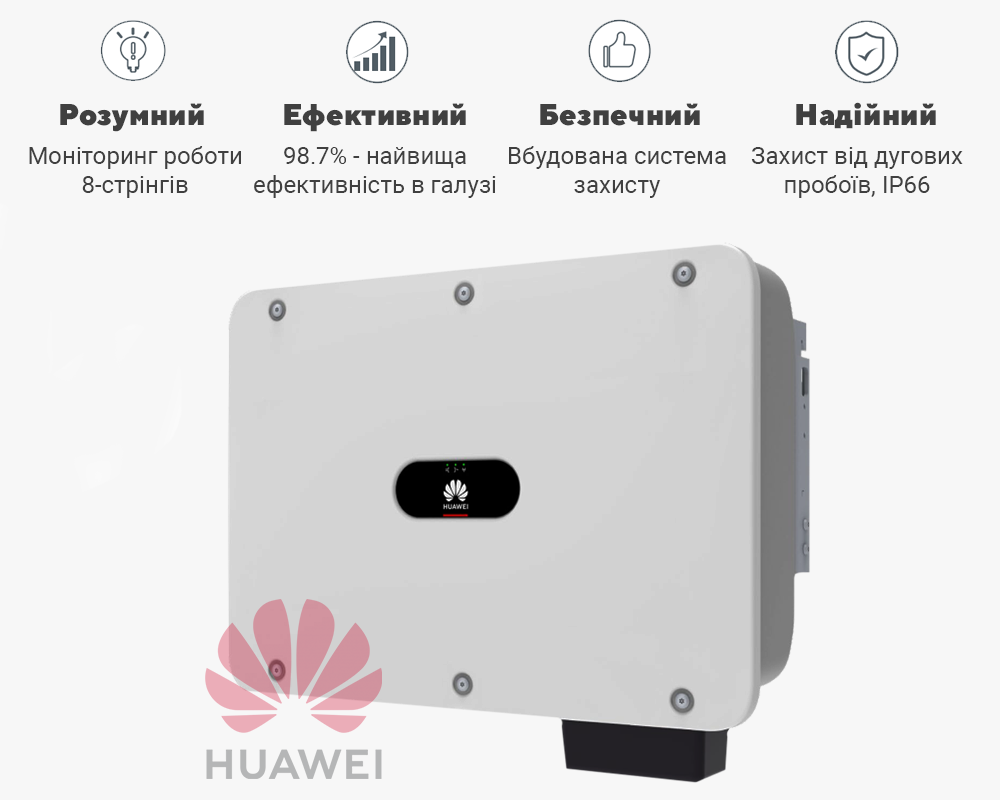 Huawei SUN2000 30KTL-M3 - сучасний інвертор з широким набором функціоналу для побудови СЕС, ця модель поєднує найкращі характеристики з сучасною системою моніторингу та діагностики системи, а також має ключову перевагу - 4 MPPT трекера.